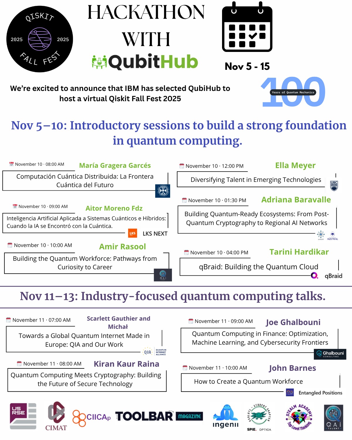 Qubithub.org is a Latin American initiative with partners in the US focused on advancing quantum computing and its related interdisciplinary fields, such as quantum optics, quantum information, photonics, artificial intelligence, nanosciences, and robotics.